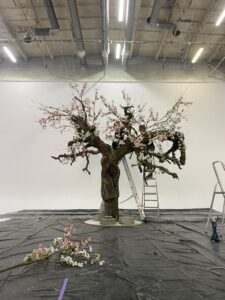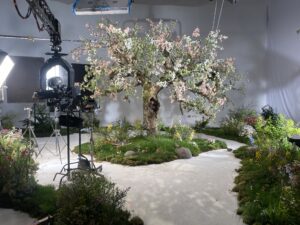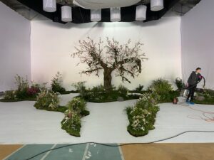 Naszym zadaniem było stworzenie scenografii przypominającej rajski ogród, z centralnie ustawioną, prawdziwą jabłonią jako głównym punktem kompozycyjnym.