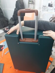 Do reklamy przygotowałyśmy atrapę walizki, która musiała zostać odwzorowana co do milimetra według dostarczonego projektu. Dodatkowo wykonałyśmy skórzane cyfry na magnesach, które były podmieniane w poszczególnych scenach. Precyzja, funkcjonalność i estetyka – wszystko w jednym!