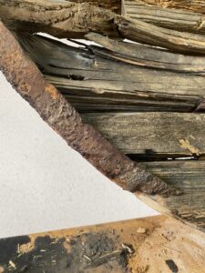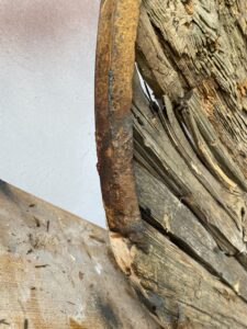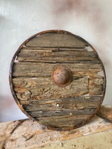 Na potrzeby scen bitewnych przygotowałyśmy dwuwariantową tarczę – w wersji „nowej” oraz po pożarze, z uwzględnieniem śladów zniszczenia, nadpaleń i deformacji.