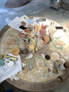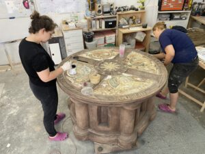 Wśród nich znalazł się m.in. katafalk stylizowany na ołtarz, bogato zdobiony płaskorzeźbami oraz ręcznie malowanymi freskami na blacie.