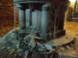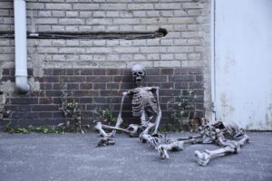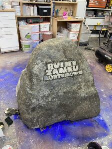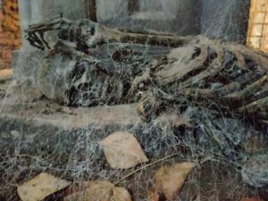 Stworzyłyśmy również kościotrupy z krypty, realistycznie wykończone i dopasowane do mrocznej estetyki lokacji, a także sztuczne kamienie z inskrypcjami, wykonane metodą rzeźbiarską z narzutu i ręcznie patynowane.