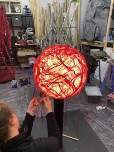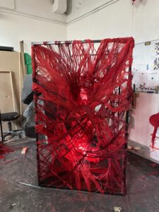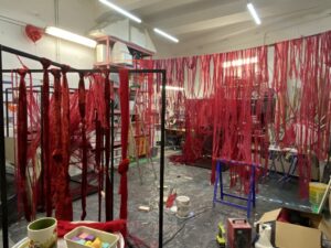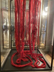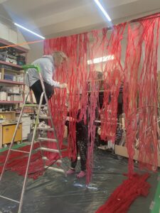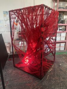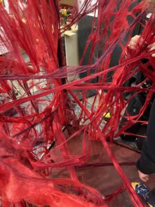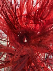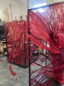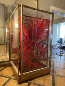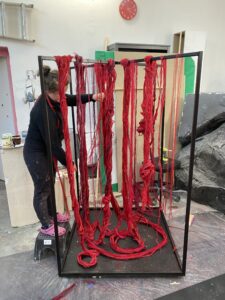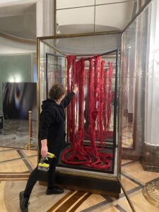 Każda z gablot zawierała instalację wykonaną z materiału tekstylnego, zaprojektowaną jako abstrakcyjna forma nawiązująca do motywów cielesności, natury i wewnętrznego krajobrazu organizmu – w duchu całego widowiska.