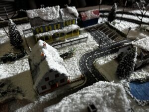 Nietypowa realizacja polegała na przemianie amatorskiej makiety o letnim klimacie w zimową scenerię. Dzięki detalom i zmianom kolorystycznym udało nam się całkowicie zmienić atmosferę – z pełnego lata w pełnię zimy, zachowując przy tym naturalność i spójność projektu.