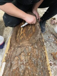 Do drugiego sezonu kultowego już serialu Rojst przygotowałyśmy imitacje drewnianych elementów z wyrytymi napisami. Na prawdziwym konarze umieściłyśmy odlew narośli i ręcznie wyrzeźbiłyśmy inicjały bohaterów, nadając całości autentyczny, lekko niepokojący charakter. Oprócz tego wykonałyśmy butaforskie fragmenty kutej ramy łóżka – stworzone z myślą o pracy z kaskaderami, by zapewnić maksymalne bezpieczeństwo przy realizacji wymagającej sceny.
