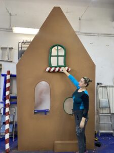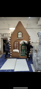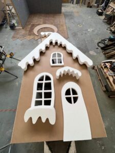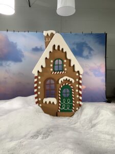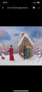 Drugim elementem był front chatki z piernika – bogato zdobiony świątecznymi ornamentami, który pełnił funkcję tła scenograficznego i natychmiast wprowadzał w magiczny, bożonarodzeniowy klimat.