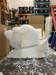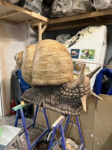 Stworzyłyśmy również ręcznie rzeźbionego ślimaka w dużej skali, który stanowił centralny punkt aranżacji zdjęciowej.