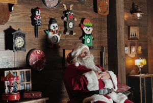 Na potrzeby świątecznej reklamy Smyka przygotowałyśmy kilka elementów scenografii, które uświetniły wnętrze domu Świętego Mikołaja. Wśród nich znalazły się customowe zegary oraz choinka zbudowana z prezentów – wszystko utrzymane w bajkowym klimacie i dopracowane w każdym detalu.