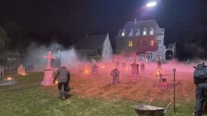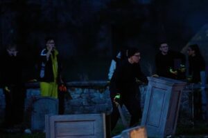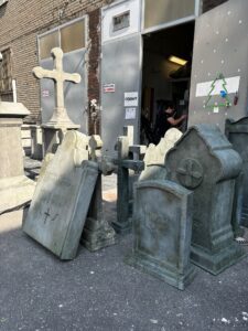 Do scenografii programu The Traitors dla stacji TVN stworzyłyśmy kilkadziesiąt nagrobków na potrzeby jednej z misji-zadań uczestników.