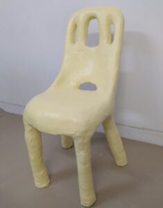 Do nowej kampanii przygotowałyśmy autorskie, ręcznie rzeźbione krzesło oraz lekki, gąbkowy regał. Oba elementy łączą funkcjonalność z oryginalnym designem, idealnie wpisując się w artystyczny charakter całej realizacji.