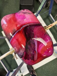 Wszystkie elementy zostały ręcznie wyrzeźbione i wykończone żywicą akrylową, co nie tylko zapewniło trwałość, ale również pozwoliło uzyskać głębię faktury i subtelny połysk.