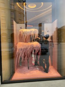 W warszawskim butiku Hermès przygotowałyśmy kolejną odsłonę dekoracji do dwóch witryn wystawowych, tym razem inspirowaną motywem abstrakcyjnego, lodowego świata.